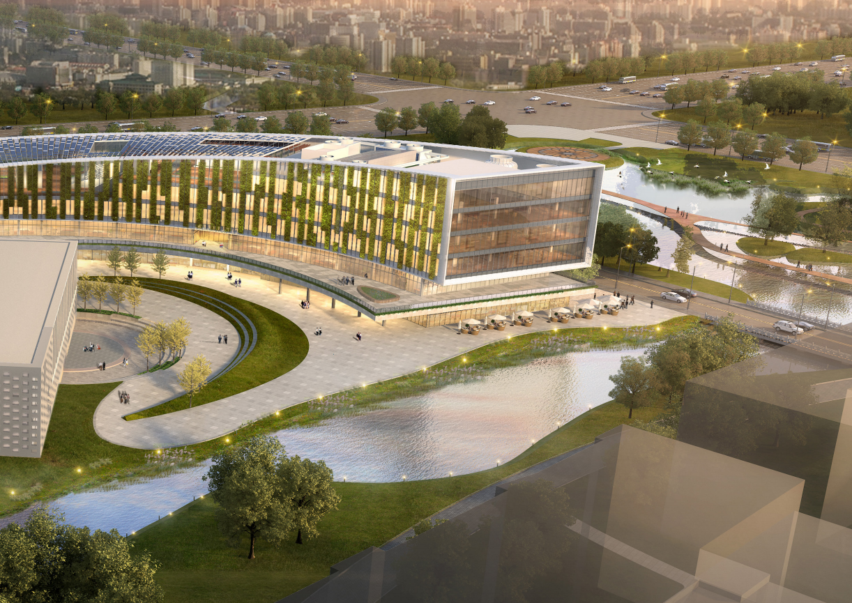 新大樓外墻采用砼創(chuàng)UHPC超高性能混凝土材料,滿足再生能源,立體綠化,裝配式幕墻的建筑技術(shù),塑造一個包容,開放,綠色,可持續(xù)的建筑形象。建筑風(fēng)格上則運用高技派建筑手法,通過運用弧線和層層遞退的建筑形體,來彰顯包含張揚而不失謙虛的建筑個性。營造一種輕松,愉悅的社交氛圍。