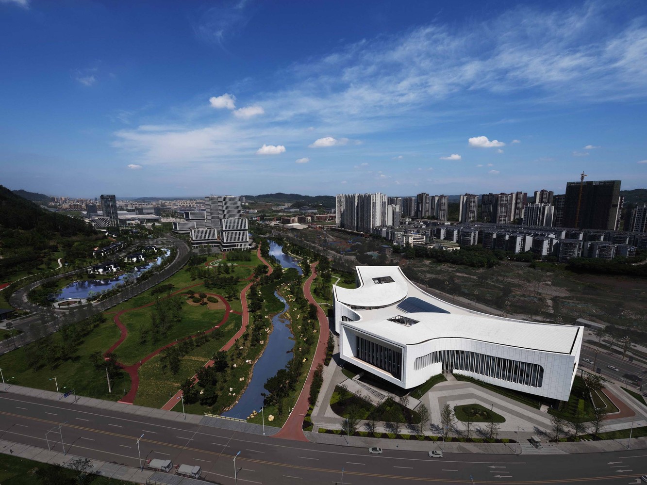 宜賓市科技館建于三江新區(qū)建科研究中心,總建筑面積2.8萬平方米,位于龍頭山下、是新區(qū)面向市民的科技展示館,也是面向世界的城市門戶。