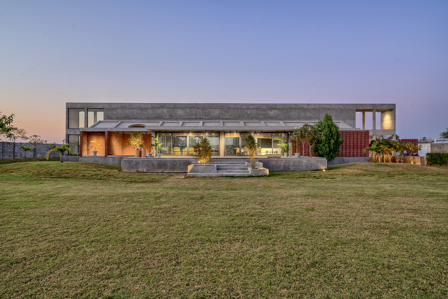 雙灣之家采用清水混凝土澆筑而成,從內(nèi)至外均采用清水混凝土做舊效果設(shè)計(jì)。建筑由南至北向兩端延伸空間,建筑與周圍的自然田園默契的相互融合。無論是黑夜或者白天雙彎之家給人們帶來一種神密之所在。