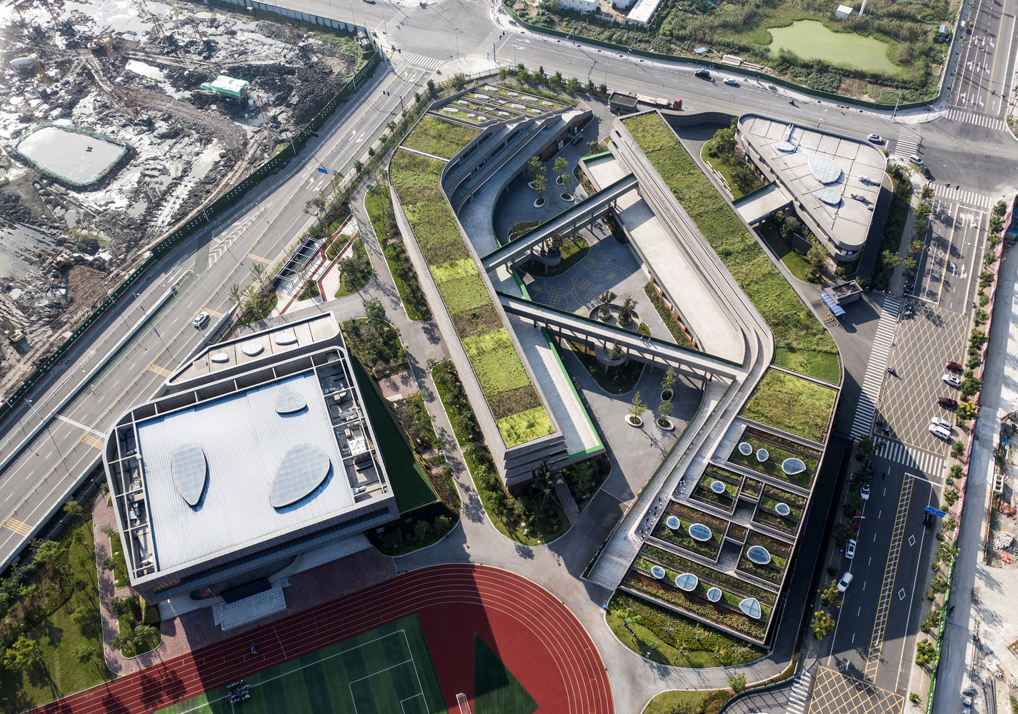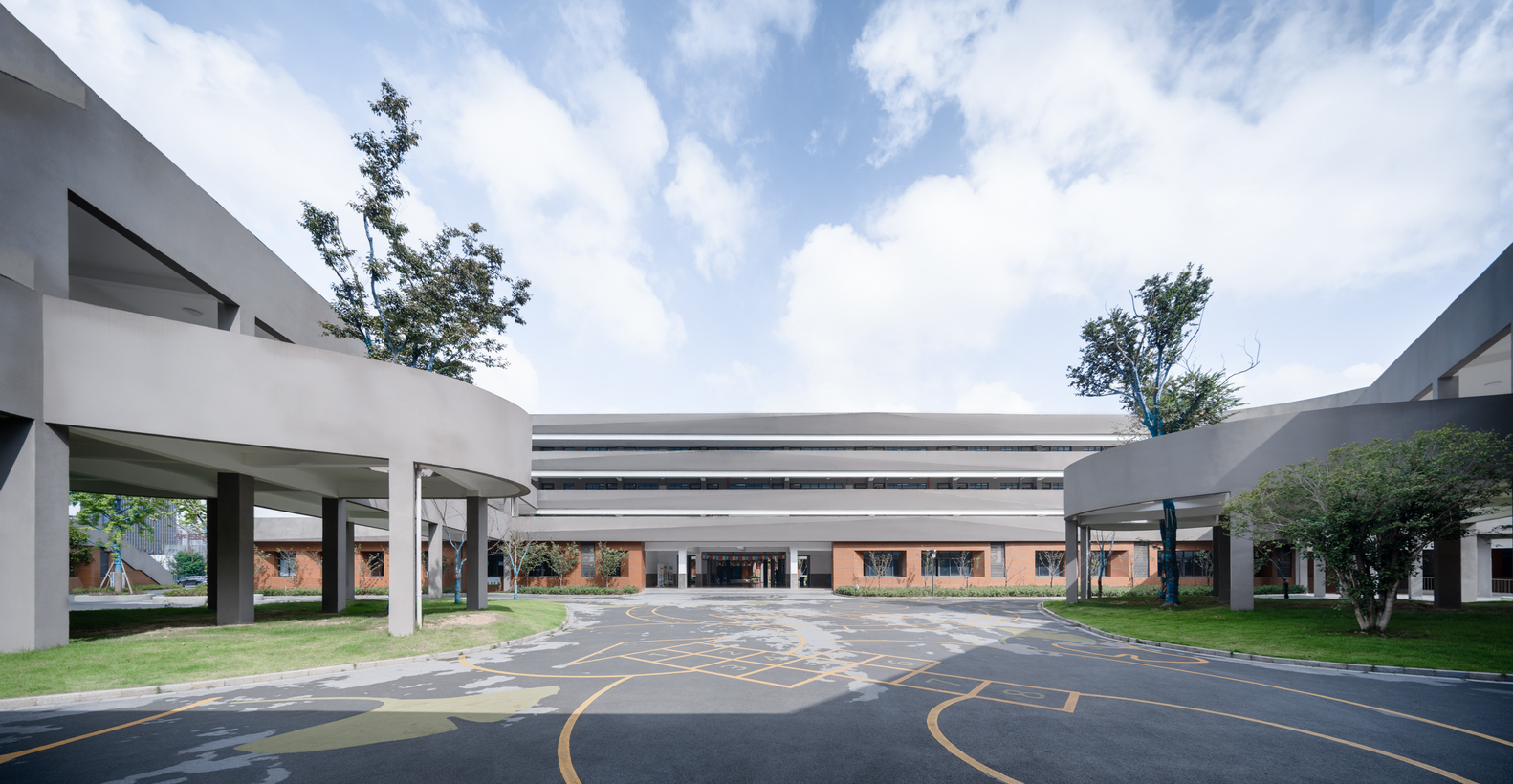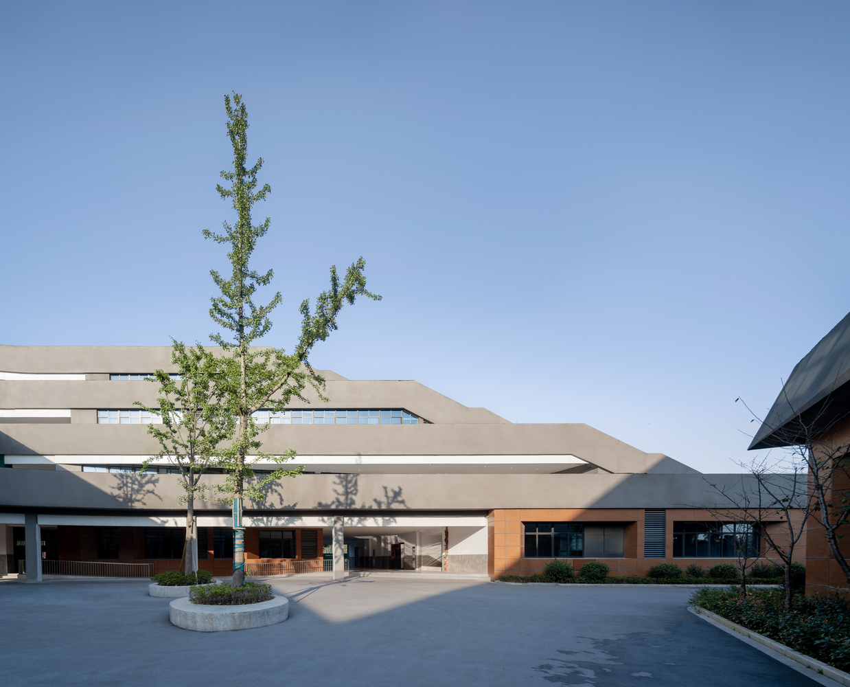 西南小學(xué)位于中國·浙江湖州經(jīng)濟開發(fā)區(qū),校園的北側(cè)為社會公園,南側(cè)隔河而望連綿漸隱的天目山脈。西南小學(xué)就選址于這山城之間,乘著這山水的靈秀,開始一段“巡檐風與月,隱幾水兼山”的建造之旅。建筑的的造形十分的奇特,以天目山的“目”字為結(jié)構(gòu),風格也十分的新穎,建筑外表皮采用清水混凝土掛板打造,以全新素顏面貌與遠處的天目山合諧的融為一體。