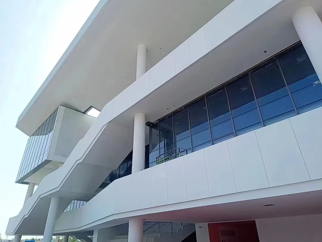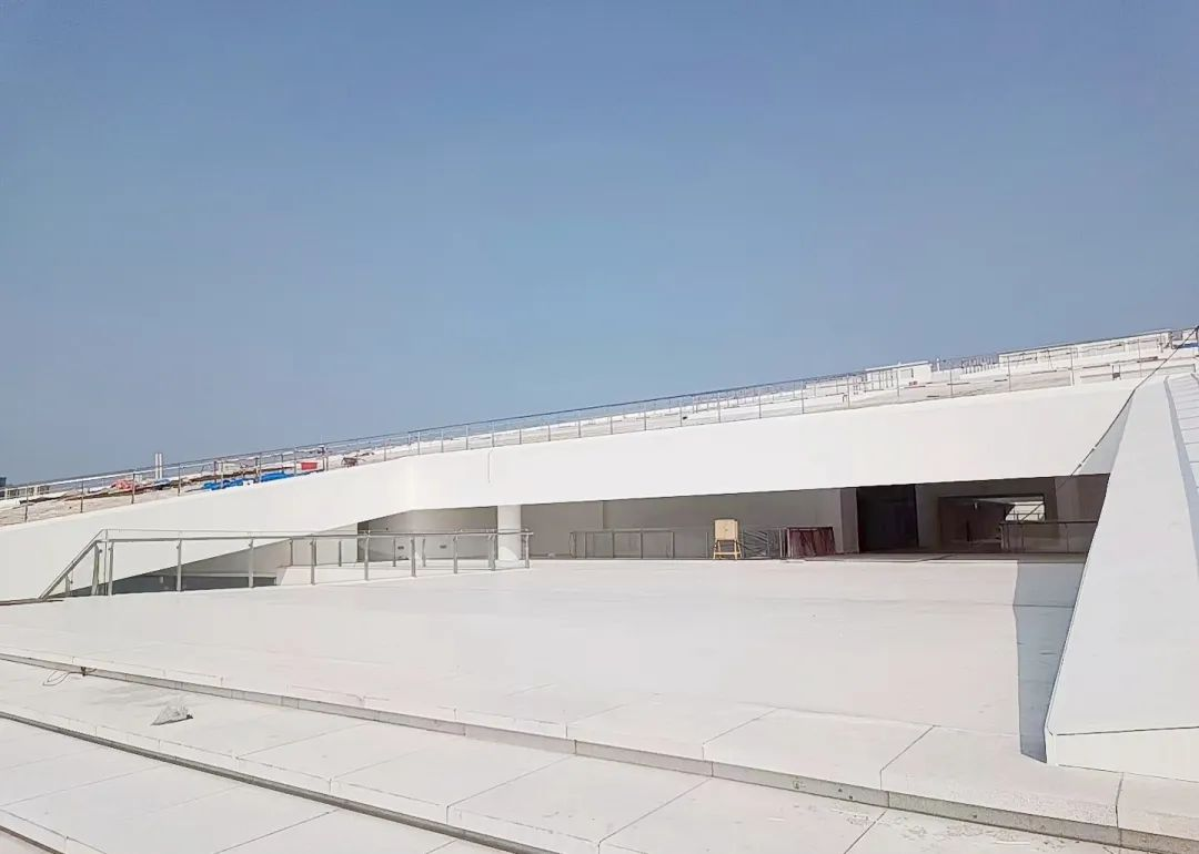 屋面檐口及走道護欄裝飾采用砼創(chuàng)生產(chǎn)的UHPC超高性能混凝土掛板,純白色清水面的UHPC板簡約并不簡單。