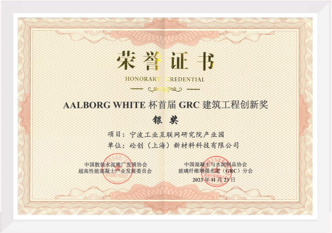 2023年11月22日至24日,由中國(guó)混凝土與水泥制品協(xié)會(huì)GRC分會(huì)、中國(guó)散協(xié)UHPC委員會(huì)共同舉辦的“首屆GRC/UHPC建筑工程創(chuàng)新獎(jiǎng)”評(píng)選與頒獎(jiǎng)活動(dòng)在安徽省安慶市隆重舉行。本屆活動(dòng)意義非凡,這是對(duì)我們一年來(lái)辛勤付出的肯定,也是對(duì)我們今后工作的鞭策和激勵(lì)。